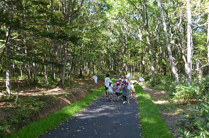くるみなの森を1周する約3キロメートルの散策路は、自然の中で木の温もりを感じ、命を学ぶ「木育」の場。樹木や植物に触れ鳥のさえずりを聞きながら、新鮮な空気をたっぷりと吸いこむと、自然と一体となるような感覚を味わえます。時間や季節によって、さまざまな森の表情と出会えるのも魅力です。